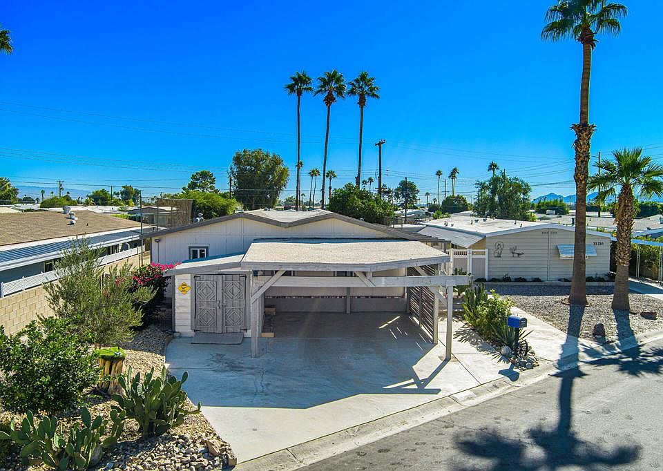 Welcome to Tri-Palm Estates, a vibrant 55+ golf community where you own the land! Enjoy unlimited golf for two owners, access to three sparkling pools, a clubhouse, and an on-site restaurant--all with low monthly HOA fees. Conveniently located with quick access to I-10, this home is just minutes from the new Disney Cotino Village, Costco, Sam's Club, Acrisure Arena, and an array of shops and restaurants in Rancho Mirage and Palm Desert. This property is situated on the 18th hole with a direct gate access to the golf course. Step inside and you'll discover a home that offers plenty of space for two people to live comfortably with separate entrances--ideal for guests, friends, or a roommate. You'll love the spacious primary suite with a huge walk-in closet and large bathroom, as well as a large separate laundry room with lots of storage for added convenience. An additional room will work as a den or office. Come see all that's waiting for you in this active and welcoming community!