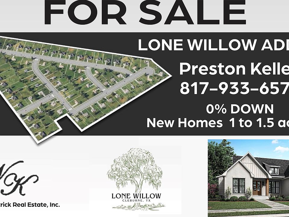 Welcome to Lone Willow Addition - Your Perfect Escape Near Cleburne Lake! Nestled on the picturesque west side of Cleburne Lake, Lone Willow offers the perfect blend of peaceful country living with easy access to city conveniences. Located just six miles from Cleburne and only ten miles from the Chisholm Trail Toll Road, this prime development provides quick connections to Highway 67, making your commute a breeze! Situated outside city limits yet within Cleburne's Extraterritorial Jurisdiction (ETJ), Lone Willow gives you the flexibility of rural living with the potential for future growth. Each homesite in Phase 1 has already been equipped with water taps by Johnson County Special Utility District (JCSUD), ensuring a seamless connection to start to your dream home build. For modern conveniences, United Cooperative Services is powering this development with electric service as well as fiber-optic high-speed internet, keeping you connected while enjoying the beauty of the Texas countryside. Whether you're looking to build your forever home or invest in a growing community, Lone Willow is the perfect place to put down roots. Don't miss out on this incredible opportunity! Contact us today for more details and to secure your spot in this stunning new development!