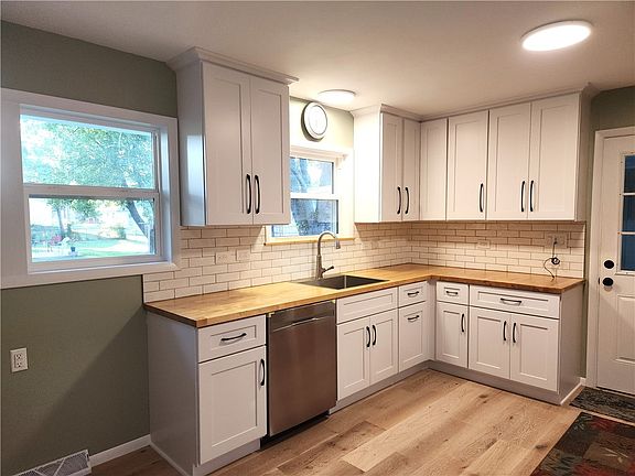 Finished basementUpdated tile bathSealed butcher block countersFull-size pantryScreen roomHardwood floorsOpen patio