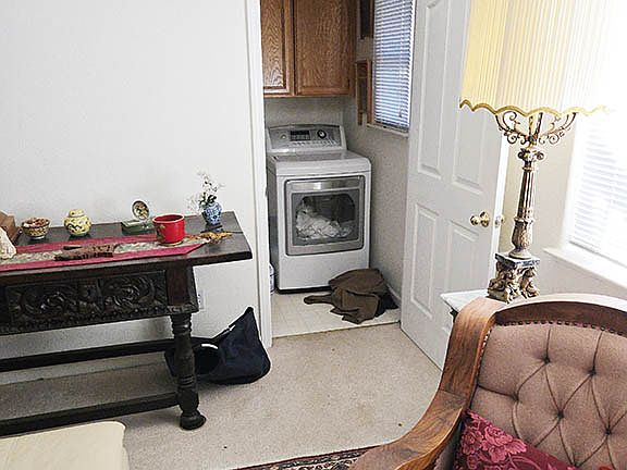 To the far end of your family room and diagonally across from you is another doorway guiding you to a shared laundry room (clothes washing machine and dryer).