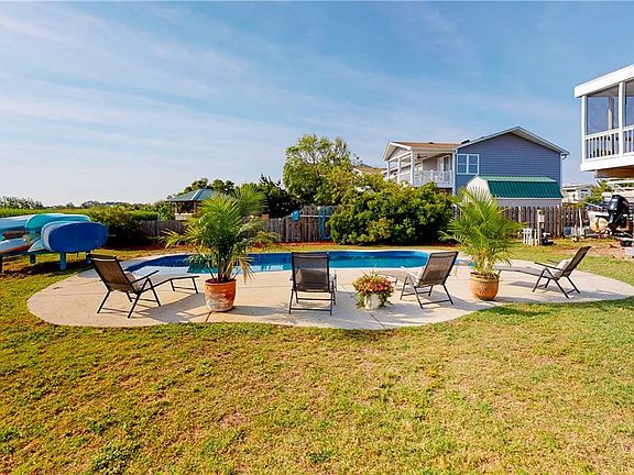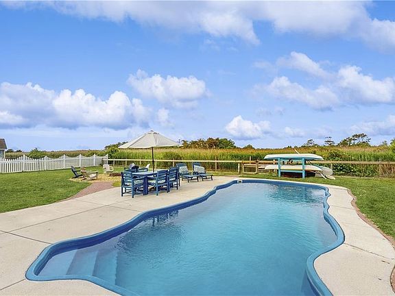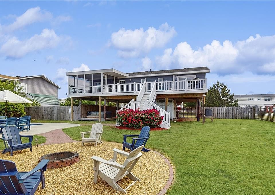 Absolutely Amazing waterfront views and vistas as far as the eye can see - out of this world! One of a kind waterfront paradise bordering the Back Bay National Wildlife Refuge, guaranteeing forever-protected, pristine scenery just feet from the Atlantic. Currently an established short term rental w/ $70k+ annually, this property offers limitless potential for expansion or enjoyment as a cozy, updated Sandbridge bungalow. Charm galore with a laid back beach vibe. Recent updates, include; newer, kitchen, siding, windows, decking, pool, hot tub, furnishings, custom paver firepit & HVAC. Plan your epic boat or day trip to NC or unwind on the beach before boating to local restaurants for an epic sunset. Spacious covered lanai offers semi-private hot tub and tons of space for outdoor living/entertaining. Higher elevation home is an ideal value add opportunity with potential lower level buildout
