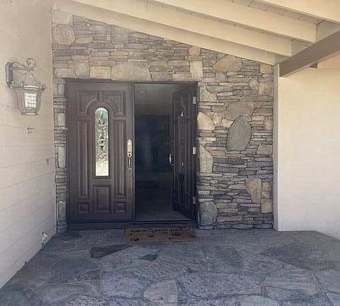 This is a Spacious Custom Single Story on a large lot. Great entertainer's Property. Circular driveway with lots of parking. RV access as well. Home features 4 Bedrooms and 2 Baths with a bonus room that could be used as a 5th bedroom. Master suite is large with a spacious closet, private bath with stall shower and separate jacuzzi tub. Main bath has dual vanity, granite stall shower and a separate jacuzzi tub. Great kitchen which facesthe front of the house is U shaped. Large separate eating area and custom double pantry. The living Room features a Santa Barbara Beach Stone fireplace, Formal dining room has sliding glass doors that lead to the rear yard and features lots of light. Travertine flooring throughout and Carpet in the bedrooms. The back yard features an Outdoor Kitchen that offers a BBQ, island ,sink, fridge, and Burner. Custom fireplace with Pizza Oven. Dual pane window throughout with extra sound proofing in front. Newer AC 2020. Newer roof and carpet 2022. Great property for a RCFE senior living home.