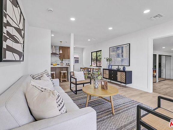 This remarkable residence features four generously sized bedrooms and two modern, updated bathrooms within the main house, offering a perfect blend of style and comfort. The property also includes a detached mother-in-law that provides a full bathroom and a convenient kitchenette, ideal for visitors, extended family, or a flexible space for work or relaxation. The home has been thoughtfully remodeled with high-end contemporary finishes, giving it a sleek, polished feel. The spacious primary suite is designed to be a tranquil retreat, complete with abundant closet space to accommodate all your needs. The open-concept layout of the living spaces creates a warm, inviting atmosphere, ideal for entertaining or everyday living. Throughout the home, large windows allow natural light to pour in, highlighting the meticulous craftsmanship and attention to detail in every room. The beautifully designed kitchen is equipped with modern appliances and offers functionality and style, making it the heart of the home. The equally impressive outdoor spaces provide the perfect backdrop for relaxation or gatherings. Whether you're enjoying a quiet morning in the garden or hosting a weekend get-together, this property offers the ideal setting for all lifestyles. With its modern upgrades, expansive living areas, and a separate guest unit, this home is a rare find that effortlessly blends luxury and practicality.
