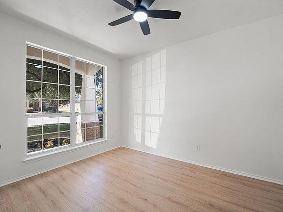 Fully renovated and move-in ready, this stylish home in the Park at Blackhawk community combines modern design with everyday livability. Inside, wide-plank luxury vinyl flooring, fresh designer paint, and updated lighting create a cohesive, contemporary feel throughout. The open-concept living area centers around a striking fireplace and flows seamlessly into the reimagined kitchen—featuring waterfall-edge quartz countertops, custom vent hood, deep farmhouse sink, herringbone backsplash, and matte black fixtures. A spacious dining area offers room for gatherings and overlooks the private backyard framed by mature trees and a serene greenbelt view. Upstairs, the primary suite feels like a retreat with a spa-inspired bath offering dual vanities, a soaking tub, walk-in shower, and an oversized closet. Three secondary bedrooms plus a flexible bonus space provide room for a home office, guest suite, or playroom. Thoughtful updates include a brand-new roof, new HVAC system, modern hardware, updated fixtures, and refreshed landscaping for true turnkey ease. Located on a quiet interior street backing to green space, this home enjoys all the amenities of Park at Blackhawk—multiple pools, playgrounds, trails, and access to nearby Blackhawk Golf Club. Zoned to highly rated Pflugerville ISD schools and just minutes from H-E-B, Costco, Lake Pflugerville, and Stone Hill Town Center, this property delivers the perfect balance of modern comfort, neighborhood charm, and everyday convenience.