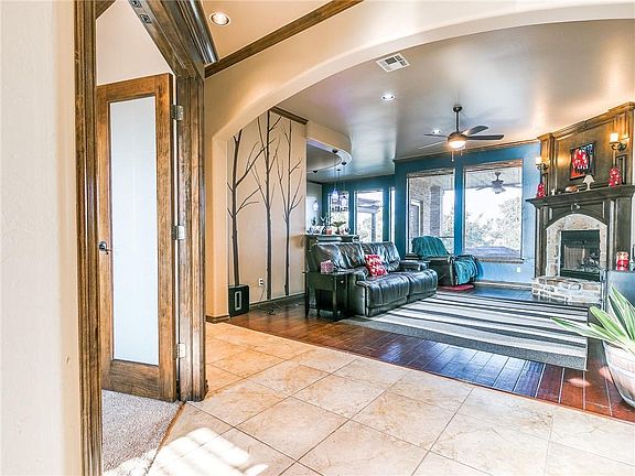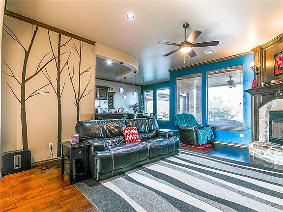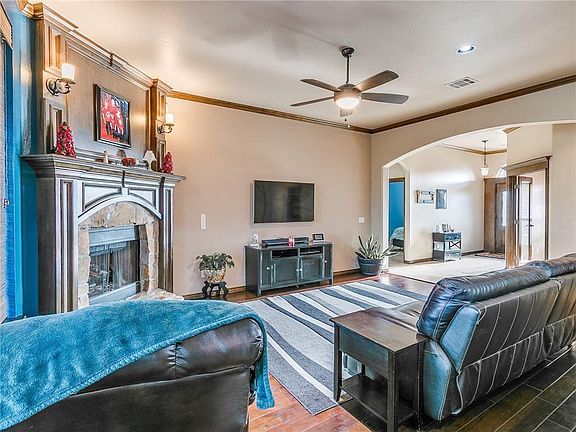 Beautiful home with tons of curb appeal & tiered level backyard oasis with pergola, hot tub & large open patio. Home features wood flooring, granite counter-tops, 3 car garage w/ inground storm shelter, powder bath, study, beautiful woodwork, led color changing lighting outdoors. Kitchen features include gas stove, granite, pantry & tons of cabinet & counter space. Master suite has "mood lighting", Jetted tub & separate shower, double vanities & walk-in closet. Secondary bedrooms have jack-n-jill bathroom between. **hot tub & stainless steel grill to stay**