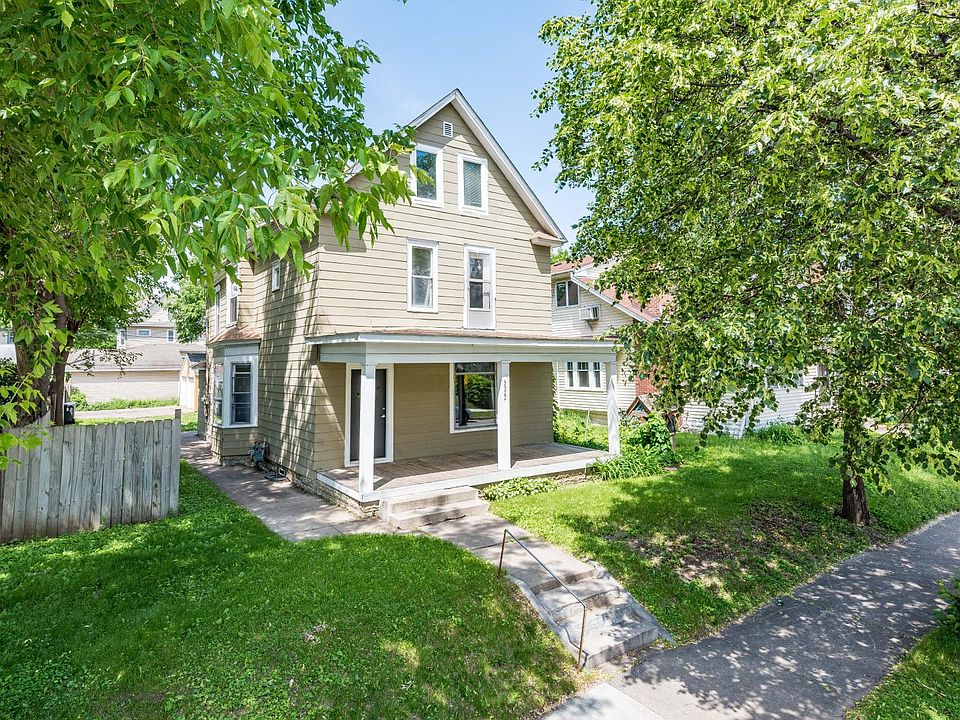 Open airy 2 bed 1 bath main floor duplex apartment for rent. This unit includes: new kitchen, stainless appliances, dishwasher, gas range, large full bathroom, new windows, new paint, original refinished hardwood floors. Tenant gets 1 car garage, basement storage, coin operated laundry in basement, off street parking and nice yard area. Landlord is looking for a 1 year lease for July 1st 2020 Please call or text Mike for more information and for a virtual Matterport tour ( I can text tour to you.) Owner pays water & trash. Tenant pays gas & electric