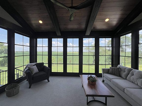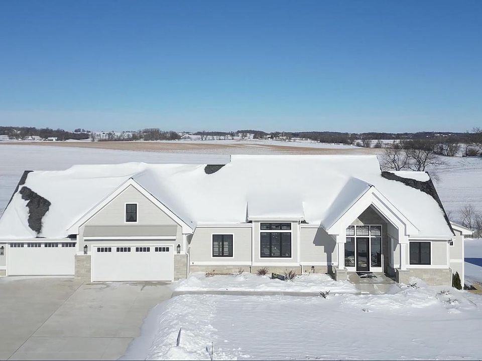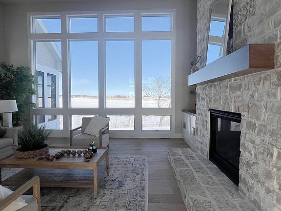 Thoughtfully designed parade home by Marten Building & Design, full of awesome details like built-in Amish crafted cabinetry, heated bathroom floor, custom lighting, beams, stone fireplace & hardwood floors. Spacious, private homesite with beautiful unobstructed view of rolling hills. Natural light floods every room through oversized windows, creating a bright and inviting atmosphere. The kitchen is a dream, and features a massive kitchen island, nearly 12-foot-deep pantry with a built-in coffee bar, and double-wide fridge and freezer. A split-bedroom layout offers both privacy and connection, the oversized garage (with a tandem fifth stall) has room for boats, toys, or a workshop. Zero-step entry, and a private staircase to the lower level elevate everyday living.