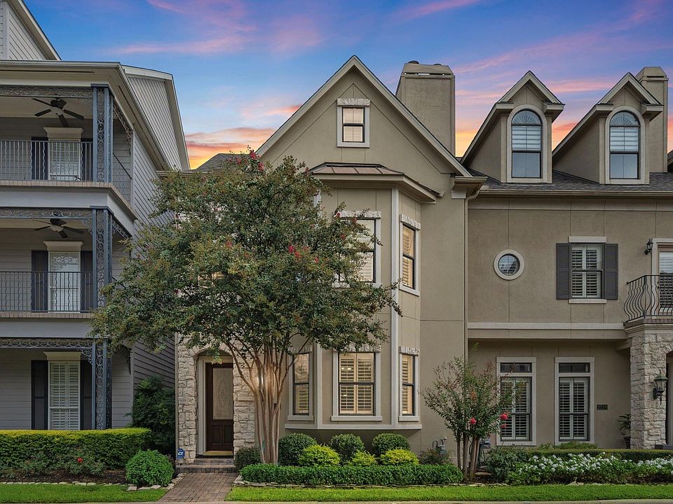 Welcome to this exquisite 3-bedroom, 3.5-bathroom townhome nestled in a manned gated community. The home boasts a stunning exterior with stone accents and lush landscaping, offering exceptional curb appeal. Inside, you'll find high ceilings, crown molding, and abundant natural light throughout the spacious family room, complemented by a cozy fireplace. The kitchen is perfect for entertaining, it has a large island, and a sleek backsplash. The primary room is a serene retreat with hardwood floors, ample space for a sitting area, and a luxurious ensuite bathroom featuring dual sinks, a soaking tub, and a frameless glass shower. A versatile game room and additional living areas provide endless opportunities for relaxation and entertainment. Private paved patio with a cozy seating area, BBQ space, and lush greenery, ideal for outdoor enjoyment. The property also includes a detached 2-car garage. Don't miss the opportunity and schedule your appointment! Seller is a licensed Texas Broker.