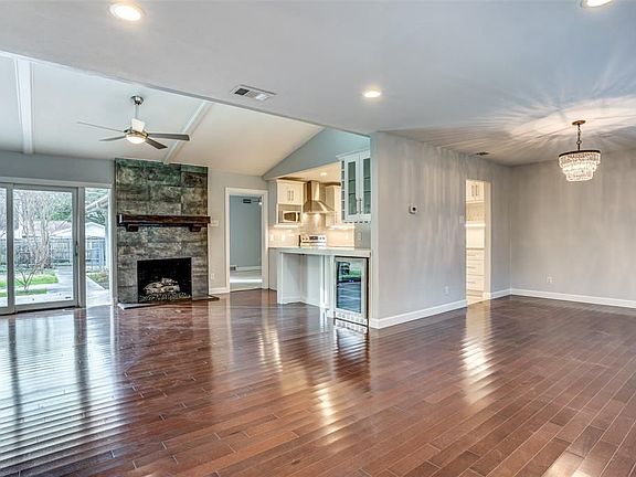 Remodeled mid century modern home, completed in 2020! Open floor plan w vaulted ceiling, can lights, plantation shutters & wood floors! Beautiful custom kitchen has white cabinets w granite counters & white quartz waterfall style breakfast bar & built-in wine cooler! Main living rm has vaulted ceiling & handsome tile FP. Sep 2nd living rm w tile floor is ideal for game rm w half bath & utility closet. Master BA has gorgeous carerra style quartz counter, across from 2 bedrms & large hall bath w granite counter, subway tile tub surround. Close to Northaven Hike & Bike Trail, in walking distance to Royal Park & community pool, approx 5 blocks to the popular elementary school & just over a mile to a DART rail stn!