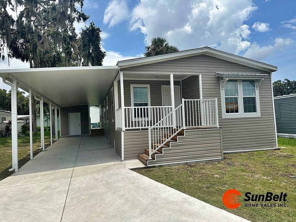 New 3/2 home Is Financing available? Absolutely!! Yes, you can be living the affordable lifestyle you deserve in Style! In a New Home. Go to the Photo Gallery and see just how much home you get for this special price. Walk up onto the 8'x12' porch and take in the view of Lake Griffin. Then step inside to an open floor plan with a chef's style kitchen with lots of counter space, (check out the counter tops) storage and huge 9' island for serving or observing The Chef at work. The hallway leads us to the first of 2 guest quarters and guest bathroom with tub shower combo. Next is the laundry room that has a service door to the large carport. Lastly, we present the Owners en-suite with large walk-in closet and bathroom with double sinks in a counter height vanity and sit-down shower with glass doors. All this but there is MORE! This home is located in Lakeside Village a sought after 55 and Fun! Waterfront community. They offer a large clubhouse with a newly Refreshed modern style pool area, beach with gas fire pit, 2 marinas and anther clubhouse with billiards and exercise area. So, it's time to call me any day and let's set up the private or FaceTime tour of this great opportunity for you owning a New home and Holding $5,000 in your hand (sorry wives hand) at closing. Remember I have some of the Best! Home deals and "My homes sell fast! Please don't move slow"