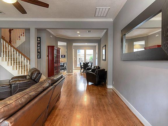 Beautifully maintained townhome in a gated & manicured community. Home has 1st floor living w/three bedrooms on the 2nd level & enormous game room/hobby combo or 4th bedroom on the 3rd level; natural light; open floor plan; kitchen w/breakfast bar & granite counters; custom millwork, hardwoods, ample storage & private patio. Spacious master includes outdoor balcony. Easy access to Downtown, Galleria, Montrose, Heights & parks. Adjacent to Spots Park & Bayou Trails.