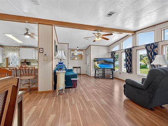 This cozy 2 bedroom 2 bath home is perfect for tranquil days and quiet peaceful evenings. Spacious Living/Dining Area with Transom windows above for a wall of light. Extra spacious high ceilings. Kitchen has tons of cabinets & breakfast bar. Vinyl flooring throughout. Most windows have been replaced/upgraded. Side Porch has Privacy Screens but still let in the cool breezes, perfect for your morning coffee or evening dinner. Zellwood 55 Plus Resident Owned Golf Community. 72 par golf course, 4 pools, pickleball, tennis courts, full service restaurant with full beer, wine, liquor license. Banquet facilities available. Close to 429, airports, attractions, shopping, medical facilities and churches.