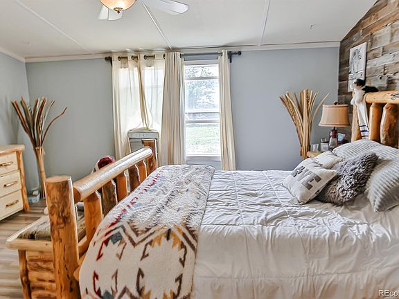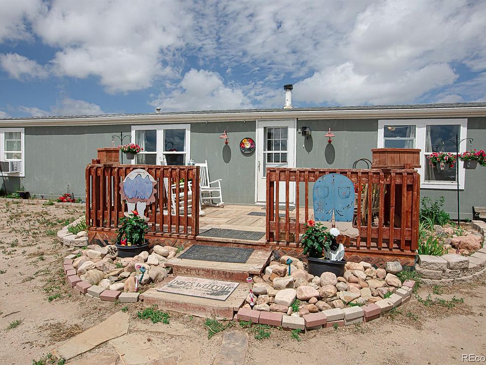 Views for days! This rancher is on 40 acres of land, with so much open space and lovely mountain views! The home has nearly 2000 sq feet finished including 3 bedrooms and 2 bathrooms. Lots of rustic and farmhouse touches makes this home so cozy and inviting. The front door leads to a large living room with a wood burning stove to keep the home warm in the fall and winter months. A large opening to a cute farmhouse style kitchen and adjoining dining room. The kitchen features a walk in pantry and plenty of counter space. Off the kitchen is a spacious laundry/mudroom with access to the backyard. The master bedroom has a wooden accent wall, an attached 5 piece bathroom and a walk in closet. Secondary bedrooms off their own rustic touches and ceiling fans. Wood floors throughout primary living space. Property features detached garage, unfinished barn, detached shop, chicken coupe, a well and a fenced in area. A convenient 30 minute drive gets you to the Powers corridor for everything Colorado Springs has to offer. Enjoy luxurious country living with this home!