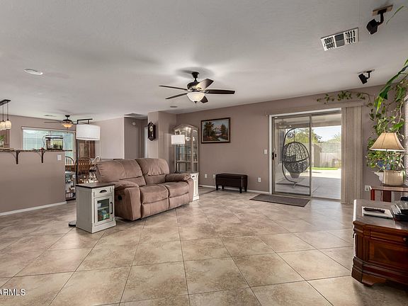 Super charming, single-story home with upgrades in all the right places, in the beautiful community of San Tan Heights, close to shopping, dining & other amenities. Gorgeous curb appeal, with easy-to-maintain landscaping, w/ peebletec w/salt POOL, desert landscaping and turf. New Trane AC in 2010. New windows, by Anderson. Tile flooring throughout and ceiling fans to help keep your home cooler in the warmer months. Enjoy the perfect weather with a security screen door. This home has an open floor-plan, so you never miss a moment; kitchen, dining and living room all flow together nicely. Chef's kitchen offers stainless steel appliances, granite countertops, tons of cabinetry, and pendant lighting. Primary bedroom is great sized, with a door leading to the backyard + security screen door... so you can enjoy some fresh air. Private primary bathroom is beautiful and offers upgrades galore with a tiled walk-in shower, bowl sinks, updated counter tops, tiled walls, pendant lighting, and walk-in closet. Secondary bedrooms are perfect sized, with a bathroom not too far down the hallway. Den/Office could easily double as a forth bedroom, if needed. Laundry room offers ample space, with storage shelving. Two car garage offers installed storage cabinets and sink for easy outdoor messes, AS well as NEW epoxy floor in the garage! Gas water heater, furnace and stove. Your backyard oasis is ready to entertain with a built-in BBQ island, extended patio, partially covered, private swimming pool, with built-in fountains to aerate the water, and turf. Don't miss out on owning this beautiful home!