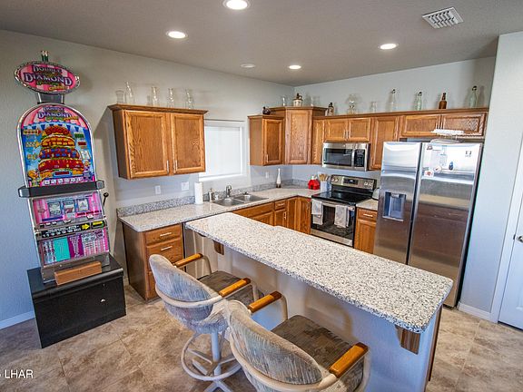 GARAGE SPACE? OH, YOU NEED GARAGE SPACE? This exceptional ANGLE HOMES Desert Rose split-floor-plan home delivers the kind of garage setup buyers dream about. A double 2-car garage INCLUDING a 49-ft deep bay with a rear 8'x10' access door and exterior concrete pad, all doors equipped with automatic openers. Bring your classic cars, boats, and offroad toys. This property is built for it. Inside, the home is beautifully appointed with granite countertops throughout, a bar-height kitchen island, and an open concept that flows seamlessly into the spacious living and dining areas. The split design offers a generous primary suite paired with two well-sized guest bedrooms, giving everyone their own space. You'll also find an interior laundry room and a large pantry, practical touches every homeowner appreciates. Step outside and you'll instantly see the pride of ownership. The current owner invested heavily to create a true backyard retreat featuring two pergolas, expansive patio space for entertaining, and even a real lawn complete with automatic irrigation timers. Home has a complete raingutter system as well. Also included is wooden storage shed.