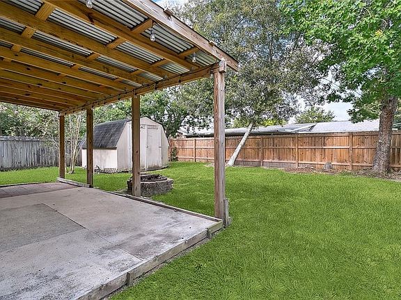 Adorable brick-front house in nicely kept, quiet neighborhood. Roof is only 8 years old. Parking for up to 6 cars, including a one-car carport. Den has vaulted ceiling & gas-starter fireplace. Primary suite has walk-in closet, tray ceiling & oversized jetted tub. Fenced back yard with shed, covered patio complete with firepit. Inside laundry room; refrigerator remains with home. Only one room has carpet. Reasonable flood insurance, and eligible for 100% financing!