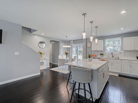 Finished basementLarge islandSleek countertopsOpen-concept designBright breakfast areaBrand-new backsplashSecond-floor laundry