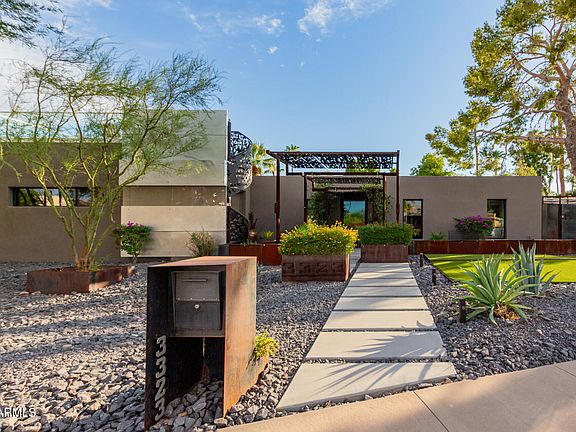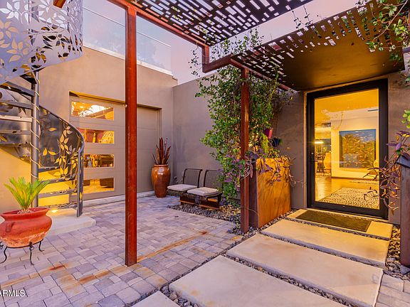 Professionally designed by Studio H, fully engineered/permitted rebuild in 2016. Stucco exterior newly painted 2024. New water heater in 2024. New pool in 2019, Rebuild includes additional square footage, concrete, masonry, framing, drywall, roof, flooring, custom glazing, all new PEX plumbing and fixtures, all new copper electrical with custom light fixtures. Custom flooring, wallcoverings, architectural metalwork and details inside and out. Climate controlled 3+ car garage, with insulated tile flooring, cable TV, bar area, full height gabion wall, architectural lighting and interior details. 2+ bedrooms with office (easily converted to a 3rd bedroom) Elevated observation deck with custom spiral staircase and glass guardrails. Custom perforated steel shade at entry/courtyard, with low walls and gate for security. Custom poured concrete driveways, walkways and hardscape. Custom metal fence w/ access code gates and "corner" double gate for RV storage? Salt water pool with integral glass bead propane fireplace, fountains and "Baja" shelf. Jacuzzi Hot Tub 1 year old included. Custom interior barn doors along with hinged solid wood doors with frosted glass inserts. 3 A/C units, one for the master suite, one for balance of house and one for the garage. Grade AA drywall and paint finishes help create the modern million dollar feel inside. Large walk in master closet with custom cabinetry and skylight. Flueless fireplace in great room, with custom blackened steel wall panels. Kitchen has a large island, with a quartz top featuring a lighted art niche, custom glass bar top (eat in kitchen), a built-in warming drawer and wine fridge. Kitchen and Laundry have Italian custom Kitchen soft close cabinets and drawers. Kitchen has matching top of the line stainless steel appliances plus washer & dryer. Fully wired for security system with alarm and cameras. Note: Some Furniture, Art Work may be available for purchase by separate agreement, transferable upon closing of home.