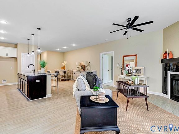 One level living ready in this premier 55+ community. Amenities include a Clubhouse, exercise room, gazebo, trash removal, snow removal, street lights and common areas. This new home is ready for a quick closing and offers an open floor plan with three bedrooms and two full baths and a 1.5 car garage. The kitchen features a large island, stainless steel appliances, and LVP flooring. The family room has LVP flooring and a cozy gas FP. The primary bedroom and bath are on one side and the guest bedrooms and another full bath on the other offering privacy for you and your guests. This neighborhood is conveniently located between Richmond and Williamsburg. Close by are medical facilities, close to VCU ER, wineries, golfing, grocery shopping and much more. Be sure to check out the interactive visual tour.