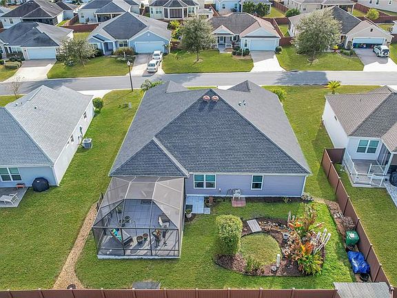 Beautiful 4BR/2BA home boasts exquisite upgrades with 2,000+/- square feet of living space and 2,850+/-square feet of total space with tons of natural light which includes an attached two-car garage, and a screened rear lanai with a large birdcage in the exclusive gated community of Oxford Oaks! From the moment you arrive, notice the lovely landscaped front yard, then walk under the covered porch to enter the front door with a sidelight. The owners have meticulously maintained and upgraded the home with gorgeous granite countertops in the kitchen, inside laundry room and both baths, a Roman walk in shower, oversized baseboards, large pantry, stainless steel appliances, fresh interior paint, No Popcorn ceilings, recessed lighting in the kitchen and fans with light kits in all bedrooms. There’s also a generously spaced open dining room, and a spacious living room with a wall of glass french doors overlooking the screened lanai, birdcage and backyard. Other features include volume ceilings and an indoor laundry room. With four bedrooms, there’s space for everyone! The three guest bedrooms share a full guest bathroom with granite countertop and a shower/tub combo. The primary bedroom is large in size, has an upgraded tray ceiling and showcases a spacious 6 x 13 walk in closet (WOW). The ensuite features beautiful granite countertops, dual sinks, a luxurious Roman walk-in shower, and a private water closet. The exterior of the home is just as impressive, with fresh landscaping, a two-car garage, a relaxing lanai with a screened birdcage and so much more. Last, but certainly not least, you’ll love the proximity to all of Oxford Oaks' exceptional amenities, including a large resort-style pool, pickleball, tennis and basketball courts, a playground, and outdoor fitness equipment. The outdoor pavilion is perfect for BBQs, picnics, or a friendly game of soccer or football. The wide streets and sidewalks encourage walking, biking, and exploring. Conveniently located just minutes from shopping, dining, schools, and more, this home offers the perfect balance of comfort, luxury, and convenience. Oxford Oaks is a non age-restricted, golf cart friendly community built by The Villages®. Lake Sumter Landing (5.4 miles) and Brownwood (7 miles) Squares in The Villages® offer various dining options, movie theaters, and nightly entertainment 365 days a year. Built in 2019, this home offers both convenience and charm and is ideally situated near shopping (Publix, Super Wal-Mart, Costco), dining & retail (Lake-Sumter Landing), The Villages Charter School, and much more.