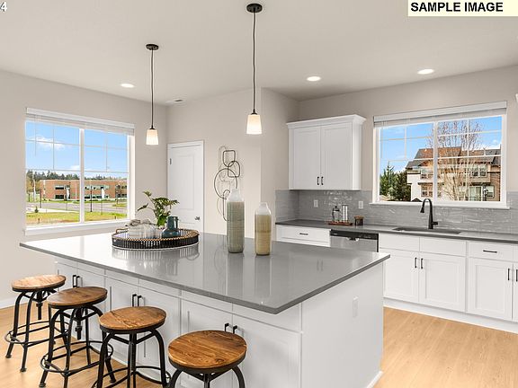 Brand New Luxury Townhome Community, Located in South Hillsboro! The Avery Plan offers 2 large bedrooms, 2.5 baths, bonus room, a kitchen island w/sink + cabinet pantry, and 9' ceilings or higher throughout entire home. Amenities include quartz counters & under-mount sinks in kitchen AND bathrooms, black matte hardware, lighting fixtures & faucets, stainless steel appliances, soft close doors & drawers at all cabinets and wide plank laminate hardwood flooring on entire main level. Stay warm in the winter with electric heat pump that will also keep you cool in the summer! The primary suite has an 11' high ceiling, walk-in closet, walk in shower, dual sinks and more. The home has a 15 x 20 one car garage, a covered deck off the great room, plus a bonus room on the ground level. Pictures are of the model home, different floorplan but w/ similar finishes. Taxes TBD. Estimated completion late September 2024. Model open Friday-Tuesday 11-4pm.