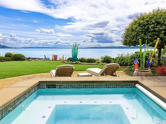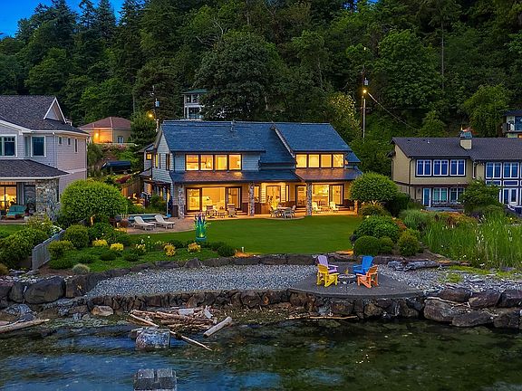 Nestled in a dreamy setting at the water's edge, this luxury beach house boasts 75ft of SW-facing waterfront. Privately situated in harmony w/its natural environment, taking advantage of sweeping Sound & mountain views. Rich in detail & thoughtful in finish, the open floor plan was designed for gathering & the waterfront lifestyle. A chef's kitchen boasts exotic blue slab granite + top-notch appliances. Window walls open to outdoor living, dining & entertaining. Welcome to coastal perfection.