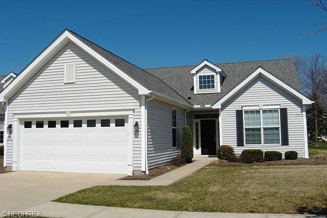 Seller is Motivated-Open to Offers! Newer, open and neutral 3 bedroom, 2 full bath, former Kopf Builders model ranch home w/ rear patio and beautiful views of private, treed yard on cul-de-sac in desirable Villages @ Waterside Subdivision-all first floor living at it's best. Home features inviting foyer, office, expanded eat-in maple kitchen w/ cabinets aplenty, pantry & extended 6 person+ breakfast bar all overlooking multi-windowed, vaulted great room. Home includes first floor decorative trayed master bedroom complete w/ dual vanity, shower, huge walk-in closet and separate toiletry. Great sized additional bedroom (S), 2nd full bath & first floor laundry. All newer upgraded stainless steel appliances to stay (gas stove, microwave, french door frig, dw) along w/ newer upgraded front load washer and dryer. Amenities include: pool, tennis courts, common facility, etc. Seconds to (schools, shopping, highway, etc.) and minutes to downtown Cleveland. Award winning schools!