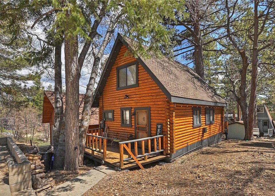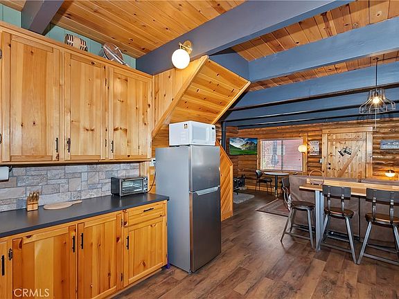 Time to make your log cabin dreams come true! Located in Green Valley Lake, the highest town in the San Bernardino mountains, this getaway cabin has everything you need to enjoy the mountain lifestyle at its finest! Snow Valley Ski Resort is just 5 miles away with hiking and fishing mere minutes from your front door! The open great room area features the living room with beamed ceilings and a free standing fireplace, dining area, the updated kitchen and a full bath. From this level, you can enjoy the cozy front porch or the open rear deck for some peace and quiet. On your way upstairs you will notice an extra storage shelf, then you arrive at the two delightful bedrooms and a hall closet. This quintessential mountain cabin comes completely furnished ready for you to come up and enjoy! There is a survey on file as well as an STR permit. Green Valley Lake is the hidden gem of the San Bernardino Mountains, surrounded by national forest and offering miles of hiking, off-roading and dirt bike trails, cross country skiing, and a pristine mountain lake for fishing. Come up for a breath of fresh air!