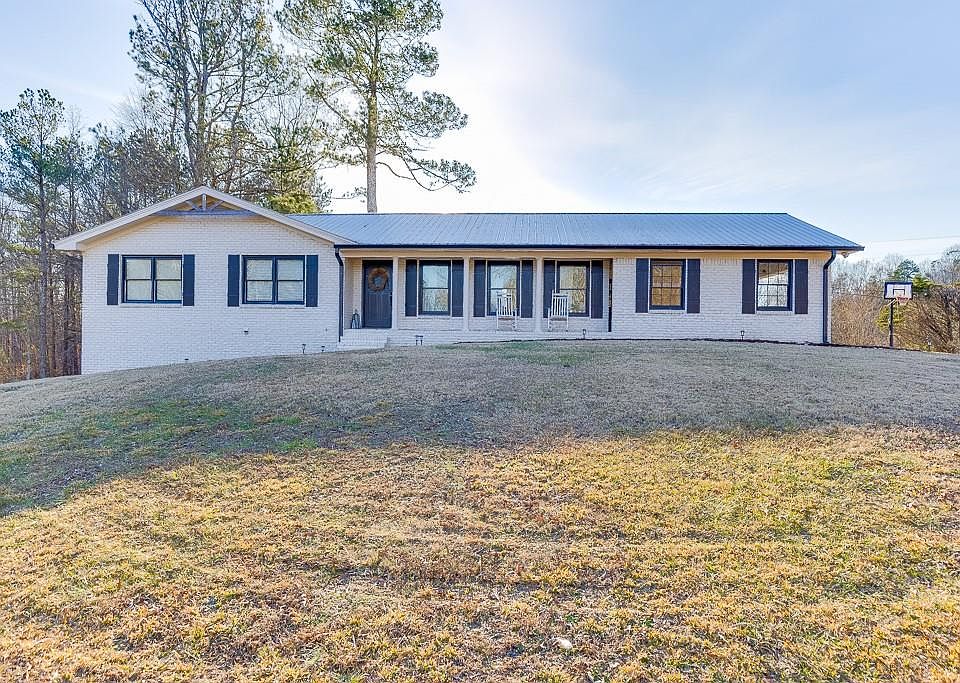 This beautiful ranch-style home, sitting on nearly 2 acres, offers a variety of custom finishes and ample living space. The main level features a spacious and light-filled design with farmhouse-inspired touches such as custom paint, new shutters, a farmhouse door, and durable hard surface flooring throughout. The gourmet kitchen is bright and inviting, boasting plenty of natural light from the private backyard. It is equipped with soft-close doors and drawers, stainless steel appliances, and a farmhouse sink. The open layout includes a breakfast bar and a dining area with a cozy fireplace. Black vinyl windows add a modern touch while maintaining a rustic charm. The guest bathroom is a standout with tile floors, a step-in shower featuring a frameless glass door, and an undermount sink for a clean, sleek look. The master suite includes a low-flow toilet, a tile shower, and a custom vanity, ensuring both style and efficiency. The lower, fully finished terrace level is ideal for entertaining with a large family room featuring a wood-burning brick fireplace. A full second kitchen, complete with a stove and dishwasher, is perfect for guests or hosting events. Two additional bedrooms and a full bathroom make this space both functional and comfortable. This home combines modern amenities with farmhouse charm, offering plenty of space for relaxation and entertainment.