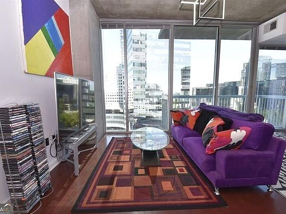 Million dollar views at less than a 1/3 of the price! Almost 180 degree Northwest/North/Northeast view. 31 story Buckhead high-rise less than 2 blocks away from the most upscale malls in the Southeast: Lenox Square and Phipps Plaza. Open concept loft 1 bedroom with nearly 20 feet of floor to ceiling windows in a 24/7 concierge building w/on-site management. Stainless steel appliances / granite counters / hardwood floors. Upgraded cabinets, granite, California closet, faucets, fixtures, lighting, sink, hardware, shower head w/wand and electronic lock. 10 foot ceilings. New water heater/prv valve, fresh bedroom paint, newer stove/microwave. California & hall closets. Over 50 square foot covered balcony. Washer/dryer. Reserved / deeded / gated garage parking. Low HOA's of $419/m include 1 gig of internet, 8th floor saltwater pool / 2 story gym and clubhouse / grill / firepit and 1st floor club / copy / conference rooms and free coffee bar. Close to 75/85/400. Only 3 other units on market in a 2005 or newer property north of Atlantic Station at this total square footage 125 feet up in the sky with 10 foot ceilings under $289,900 (all are $275k+). 1 bedroom units in the Realm have sold for up to $345k in the last 7 months. 6 months comps average $420 a square foot. This is the 2nd least expensive unit in the building.