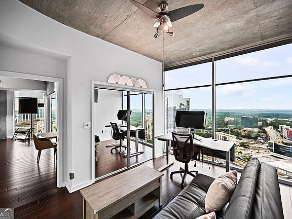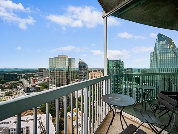 Unbeatable, wide-open views of the Atlanta skyline from this 27th-floor corner unit, facing south and west. You get full panoramic city views- day or night. This is one of the most sought-after luxury buildings in the city, with top-tier concierge service, security, and smart technology throughout. Inside, you'll find floor-to-ceiling windows with custom motorized shades- easily controlled at the touch of a button. The home is highly automated, designed to make life easy whether you're home or away. There are two spacious bedrooms, each with its own ensuite full bath. The primary suite includes a walk-in closet with skyline views right from the bed. Both bedrooms connect to a large open living area and kitchen. The kitchen includes a pantry/laundry closet, reverse osmosis filtered water system, and a breakfast bar that opens to the dining and living space. Step out onto your balcony to take in those incredible views. The building itself is full of newly renovated, hotel-like amenities-24/7 concierge, on-site management, resort-style pool, fire pit, outdoor grilling area, two-story gym, catering kitchen, beautiful meeting rooms, and a secure dog run. There's also a newly designed lobby, an optional guest parking share program, and a separate service elevator so you don't deal with construction or move-ins in the main elevators. Security is a major plus: gated, assigned, covered parking; residents only have access to their own floors; and the concierge will always call up before sending guests to your unit. It's hard to beat this level of comfort, service, and convenience-plus views that truly never get old!