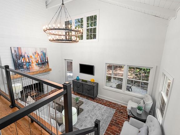 Welcome to this complete renovation of a 1950s cottage in the heart of Forest Hills, Smyrna's favorite neighborhood! Taken completely to the studs and rebuilt with modern design and efficiency in mind, this 3-bedroom plus designated office, 2.5-bath home seamlessly blends timeless charm with today's open-concept living. Step inside to a bright, airy layout featuring a flexible dining room that can also serve as a second living area, a striking designer white kitchen with quartz countertops, and a large island-the centerpiece of this vibrant home-offering additional storage and a built-in microwave. The all-new stainless-steel appliance suite features a 5-burner gas range and a French-door refrigerator with freezer drawer. Adjacent to the kitchen, a thoughtfully designed mudroom/laundry room connects to the garage, providing a convenient drop zone, pantry, and extra storage. The two-story family room impresses with its vaulted, beamed ceiling, dramatic chandelier, and cozy fireplace framed by original brick flooring-a nod to the home's vintage soul. Refinished original hardwood floors and new double-pane insulated windows run throughout, balancing character with comfort. The primary suite is a true retreat, complete with a custom walk-in closet system and a luxurious ensuite bath featuring a dual vanity, generous linen storage, and an oversized shower with dual shower heads. Two secondary bedrooms share a stylishly updated hall bath, while a newly added office offers convenient access to the powder room-ideal for work-from-home flexibility. Every system has been replaced for peace of mind, including a new roof, HVAC, wiring, electrical panel, tankless water heater, and plumbing. Step outside to a spacious covered porch overlooking a private wooded backyard-a tranquil setting for relaxing or entertaining. A charming detached outbuilding evokes cottage-like appeal and offers endless potential with nearby water and power connections-perfect as a garden shed, studio, office, playhouse, or hobby retreat. Located minutes from Smyrna Market Village, the Smyrna Library, and Village Green, this home is surrounded by exciting community transformations-including the upcoming StillFire Brewery, the renovation of Tolleson Park, and Taylor-Brawner Park-with Food Truck Tuesday and event spaces nearby. 3324 Pretty Branch Drive is the perfect blend of mid-century bungalow character, modern functionality, sleek design, and an unbeatable location on one of the prettiest streets in the heart of Smyrna.