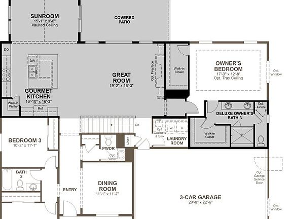 **CONTRACT ON THIS HOME TODAY AND QUALIFY FOR CONVENTIONAL RATES AS LOW AS 3.999%*** Restrictions Apply: Contact Us for More Information**** / Lake front community!! Innovative ranch-style home features a spacious great room with access to a covered patio & 8 ft. doors. The great room flows into a gourmet kitchen with a center island, and an adjacent sunroom. On the other side of the great room, you'll find a luxurious master suite, boasting a generous bedroom, two walk-in closets, a private bath featuring double sinks, a large soaker tub and separate walk-in shower make this the perfect luxury master bedroom. A study with French doors and two additional bedrooms completes the main floor. The basement foundation was completed with the upgraded height of 9 ft, and a wet bar pre-plumb.