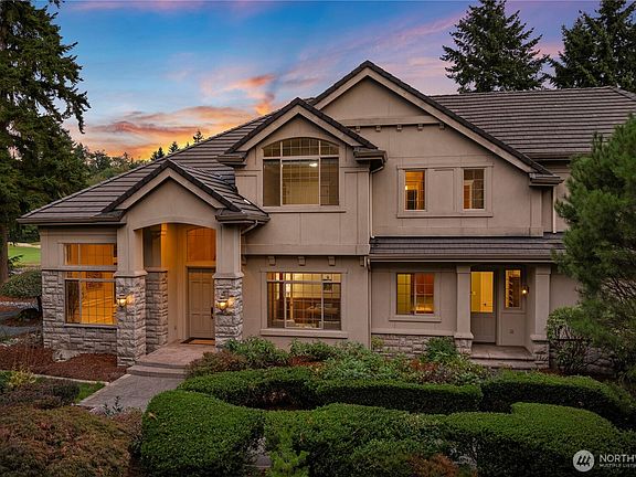 Behind the gates of Washington National Golf Club, a treelined drive leads to this former Street of Dreams home on a private half-acre overlooking the 17th fairway and reflective ponds. Beyond the patio, manicured fairways unfold against a quiet backdrop of evergreens. Inside, cherry hardwoods and crisp millwork lend warmth and elegance, while the Viking-appointed kitchen with double ovens, prep sink and wine cooler anchors gatherings. The main-floor primary suite offers a cozy fireplace, coffered ceilings and a spa-inspired bath. Upstairs, 3 en-suite bedrooms, a large bonus room, and dual staircases add versatility, complemented by a 3-car garage with golf cart bay. Here, craftsmanship and setting define a lifestyle both rare and refined.