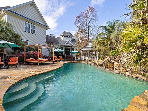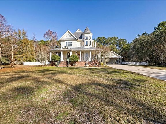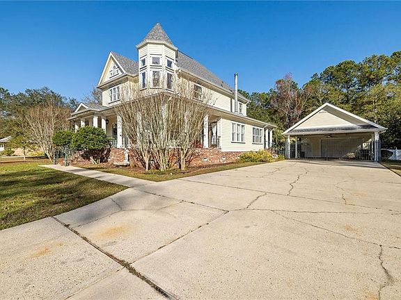 Owner willing to do Bond For Deed or Lease Purchase. Beautiful Victorian style home that sits on a 1.09 acre lot with steel framing, plantation shutters, hardy plank siding, wood floors, solid wood doors, custom ceilings, iron railings and gates outside, a wrap-around porch, custom game room with attached full bathroom and outdoor entry to pool area. Nicely landscaped with trees, a gazebo, and a Gunite inground pool & hot tub. Wired for permanent Christmas lights. Gigantic walk-in pantry with shelving galore! Whole-house generator and water filtration system. Large covered and iron fenced carport and very large garage with upper area for storage. Wine bar, wine cooler and ice maker in game room. Many options for dining in either the formal dining room, the breakfast nook, or a nice cup of coffee in the gorgeous sunroom as you enjoy looking out on to the pool and beautiful greenery in the backyard. The home, the detached garage and the gazebo all boast beautiful, matching, high quality, new roofing. This home is a definite show-stopper!!
