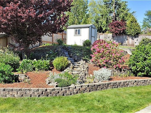 End of cul-de-sac west exposure ENORMOUS lot will surprise you at every turn! Brand new driveway and entry stoop, leaded glass custom door entry, soaring ceiling great room, way upgraded fully applianced kitchen w/ granite tops & shaker soft-close cabinets & open buffet service center. Step out onto the large BBQ deck from open dining area where Shangri-La awaits you w/ lush garden terraces even a waterfall and lower & upper yards. 2 Masters?, loft, bonus room & HUGE 500 sft garage & Sprinklers!