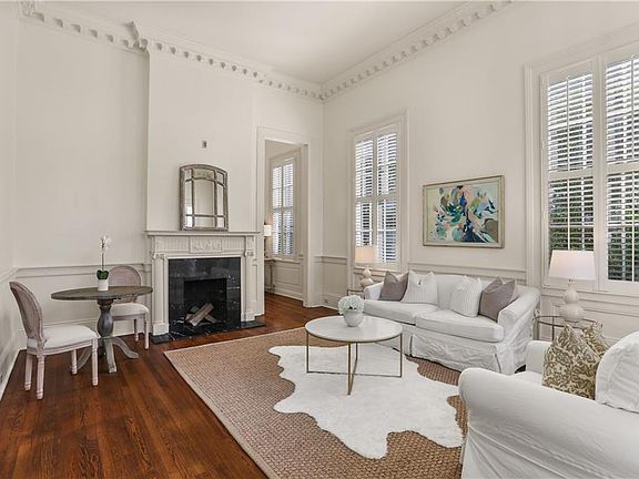 Step into a piece of New Orleans history with this beautifully restored 1868 Italianate cottage. It features a 2,244sf main house along with a charming 543sf guest house, situated in a prime Garden District location. The main house greets you with a grand entry hallway, 13ft ceilings and an abundance of natural light throughout. Architectural details include wood floors, plaster moldings, and raised-panel wainscoting. The spacious formal living room provides classic features, while the cozy den boasts a built-in bar and floor-to-ceiling bookshelves. The primary bedroom features an ensuite bath and walk-in closet with plenty of storage. A formal dining room, study, and dedicated laundry room complete the thoughtful layout of the main house. The attached 543sf guest house is accessed via a spiral staircase in the courtyard and is an ideal space for visitors or extra living area. It features a bedroom, full bathroom, kitchen, and balcony overlooking the courtyard. Outside, the landscaped brick courtyard offers a seating area surrounded by lush greenery and a shed for additional storage. The front yard is equally stunning, beautifully landscaped with an inviting front porch. Located just steps away from Magazine Street, this home offers easy access to top restaurants, shops, and the St. Charles Avenue streetcar line, with close proximity to the Mardi Gras parade route. Bedroom and full bath located in the guest house are included in the total bedroom and bath count.