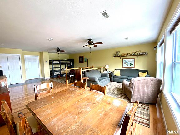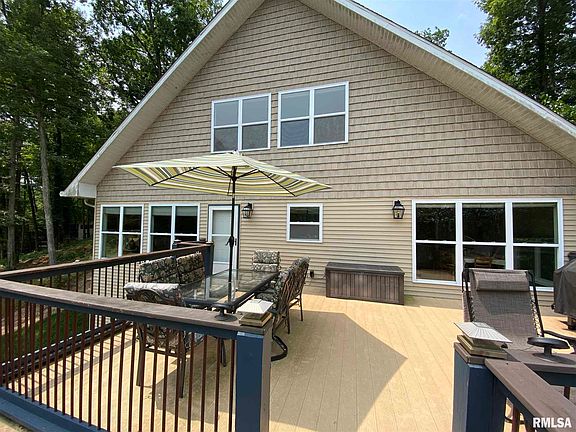 3 levels of beautiful lake views and several outdoor entertainment areas, including a screened porch, are found in this fantastic fully furnished Lake of Egypt home! Natural rock steps lead to the recently updated lakefront where you will find a solid new dock, less than one year old, that has 2 slips with electric lifts, 16x18 swim platform, PWC lift and a 6 step Wet Step stair system for easy in and out water access. Each level of this house features a living space with lake views, with decks located off the main and lower levels for easy access to the waterfront. The open concept upper bonus room can be utilized to fit your family needs. 9' ceilings are found throughout the house, including walkout basement. 3 car garage and additional roadside parking provide space for watercraft storage. This property is perfect for anyone looking for a move in ready lake home that has a great views and deep water!