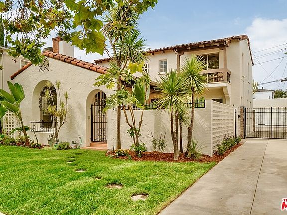 Passed down by generations, this 1920s Spanish exudes classical style and resides north of the Blvd on a beautiful tree-lined street. Lush landscaping illuminates this gem's captivating curb appeal. Enter the gated courtyard that evokes images of relaxing afternoons while reading your favorite book. A timelessly elegant interior embraces you with graceful archways, embellished doors, wrought-iron detailing, magnesite floors, and original hardwood floorboards. Engage in conversation and cocktails in the sunken living room, where high ceilings adorned with intricately stenciled beams complement the expansive glass that frames halcyon views alongside a stunning fireplace with decorative accents. Hold intimate gatherings under the dining area's candelabra-style chandelier, where a wide picture window faces the capacious courtyard. Profuse garden profiles delight the avid cook in the cheerful kitchen with its abundant cabinetry, neatly tucked laundry area, and picturesque breakfast nook that opens to a luxuriant lawn. Ornate railings grace the staircase to the upper level, where two well-proportioned retreats await. One features a private sunroom, while the generous primary pampers you with an integrated vanity alcove, dual closets, an exclusive overlooking balcony, and an adjoining bath with traditional wainscoting, a vintage style clawfoot tub, and idyllic treetop scenery. A versatile bedroom caters to overnight visitors downstairs, sharing a pass-through bath with an office displaying original built-ins. A serene oasis rests in the verdant, sun-kissed backyard large enough to accommodate a pool. A partially covered patio with a decorative outdoor brick fireplace is well-suited for entertaining under the flowing trees. Notables include a wet bar, a convenient basement, and a detached garage. Enjoy proximity to the I-5, Griffith Park, and an array of shops and restaurants in Hollywood, Glendale, and downtown LA! We know you'll feel proud to own this very special home.