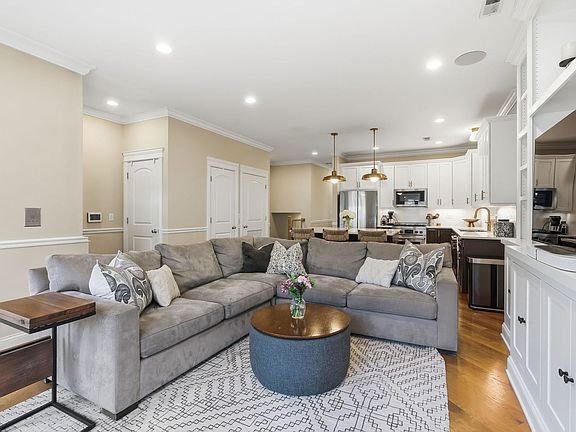 Tree-lined streetAll-brick duplexFront terraceLarge islandExpansive family roomDedicated dining roomUpdated white kitchen