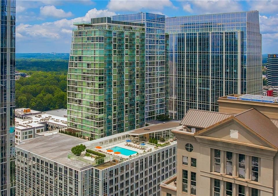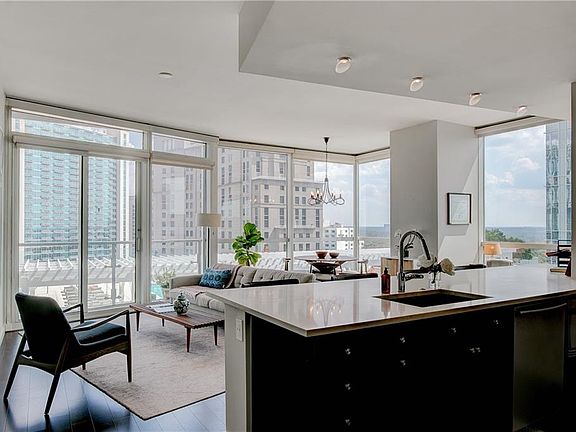 Location and views! Experience luxury Buckhead living in this rare corner unit on the 15th floor of 10 Terminus Place, one of Buckhead’s most iconic and sought-after residences. Floor-to-ceiling windows frame breathtaking panoramic views of Buckhead and Atlanta, flooding the space with natural light throughout the day. This meticulously designed one-bedroom, one-bathroom modern condo offers the perfect blend of sophistication and comfort. The open concept layout with 10 foot ceilings is ideal for entertaining, highlighted by a chef-inspired kitchen featuring a Wolf gas range, Sub-Zero refrigerator, Bosch dishwasher, Sharp microwave drawer, oversized breakfast bar, and elegant quartz countertops. Step out onto the balcony to take in the beautiful pool and city views. Enjoy an elevated lifestyle with unparalleled amenities, including: 24/7 security and concierge service, rooftop heated saltwater pool, sundeck, spa, state-of-the-art fitness center, resident lounge and catering kitchen, game room, massage room, 2 guest suites, pet walk, and complimentary valet parking. This unit includes one deeded, covered, and secure parking space conveniently located on the 7th floor. The HOA fee covers natural gas, basic cable and internet, all common areas and exemplary services noted above, offering exceptional value. Living at 10 Terminus is just moments from Lenox Square, top-rated restaurants, high-end retail, and easy access to MARTA, placing the best of Atlanta right at your doorstep. Motivated seller so schedule your showing today!