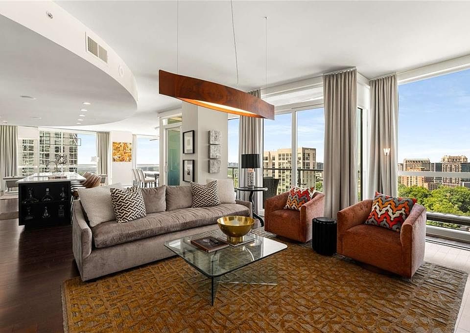 Sexy AND Smart? This seductive city home showcasing smart home Control 4 technology makes entertaining a breeze setting the mood throughout the entire home with one touch! Experience elevated living in this expansive residence thanks to dramatic floor to ceiling windows offering sweeping views of the Atlanta skyline, dazzling sunsets and twinkling night views. The open concept living and dining areas flow seamlessly into a sleek, mahogany stained chef's kitchen equipped with premium Wolf and Sub-Zero appliances, a Bosch dishwasher, warming drawer and a long center island with seating for six! A separate catering entrance adds functionality while the wet bar featuring a Sub-Zero wine fridge and ice maker is clutch when entertaining. Smart upgrades throughout the home include Control4 automation, motorized shades throughout the home, custom closets and rich hardwood floors. The spacious primary suite is a relaxing retreat, offering a sitting area, private terrace with views of Buckhead, walk-in closets and dual spa-inspired master baths boasting his & her water closets and connected by a luxurious walk-in shower. Two additional bedrooms offer generous space each with its own bath featuring granite finishes. Additional highlights include a separate laundry room and two parking spaces. This full-service building includes valet parking, 24 hour concierge and a fantastic amenity level showcasing a gym, clubhouse, pool, dog run and massage rooms. Sophisticated, stylish and located in one of Atlanta's premier buildings - this is city living at its finest!