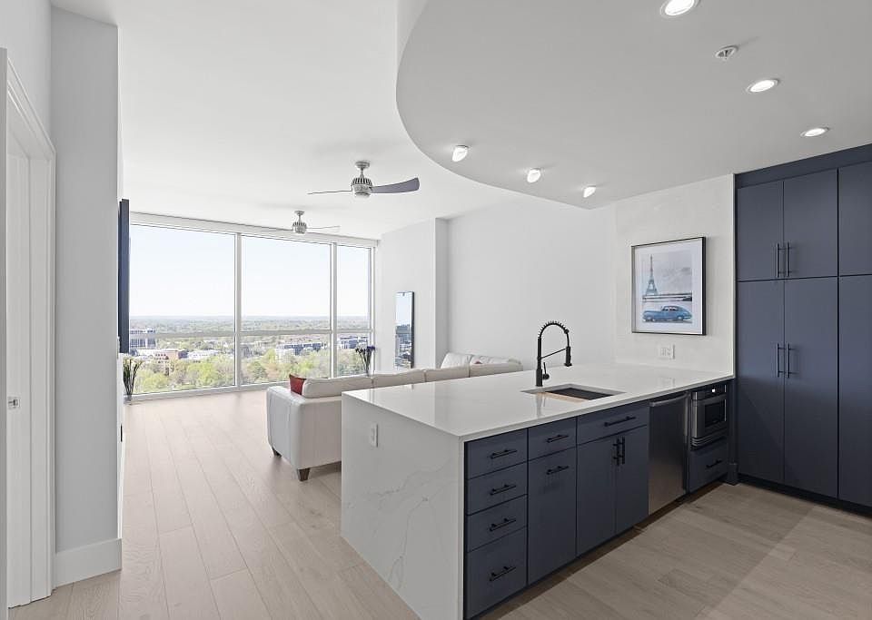 Experience elevated city living in this fully renovated 22nd-floor condo, offering panoramic views of downtown Atlanta, Kennesaw Mountain, and unlimited sunset vistas that paint the skyline each evening. Every inch of this one-bedroom plus den, one-bath residence blends modern design with timeless sophistication. Gleaming white oak hardwood floors flow throughout the open-concept layout, leading into a chef-inspired kitchen featuring a quartz waterfall countertop and backsplash, Kraus sink and faucet, Sub-Zero refrigerator, and Wolf oven — perfect for both everyday living and entertaining. The spa-style bathroom showcases floor-to-ceiling tile, a frameless glass shower, Hansgrohe fixtures, Moen faucets, and sleek new cabinetry. A flexible den adds versatility for a home office or media nook, enhanced with LED lighting and a dimmer switch. This residence also includes modern upgrades such as a 75-inch Samsung Frame TV, Nest thermostat, Nest Protect smoke and CO detector, and a high-performance Orbi WiFi system, creating a seamless smart home experience. Additional highlights include Lutron blinds and a custom-built utility closet, combining luxury and functionality in every detail. Residents enjoy world-class amenities including 24-hour concierge and valet, a resort-style pool, fitness center, and guest suites. Steps from Buckhead’s premier dining, shopping, and MARTA, this home offers the perfect balance of convenience and high-end comfort. Experience unmatched style, technology, and views — your Buckhead retreat awaits.