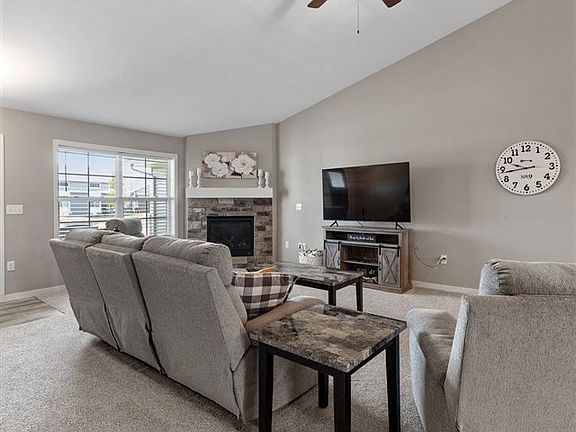 Why pay more for new construction when you can have this like-brand new condo for less! This beautiful ranch condo features vaulted ceilings and quality finishes throughout! Located in The Ridge at Indian Creek – close to schools, parks, & top-rated Hunters Ridge golf course! You will be welcomed by the great room with a corner stone gas fireplace with floating mantle. The open floor plan features a central daily dining area flowing into the kitchen with white cabinets, Brazilian black granite countertops, subway tile backsplash, stainless steel appliances, island with breakfast bar, & access to the 10x12 back deck. Convenient main level laundry room off the two-car garage entrance. Huge primary suite with two closets, a walk-in shower, and dual vanity. Another bedroom & full bathroom completes the main level. Lower level is ready to be finished to your liking and is stubbed for a bathroom. Meticulously maintained and ready for you! Easy living with lawn care and snow removal included.