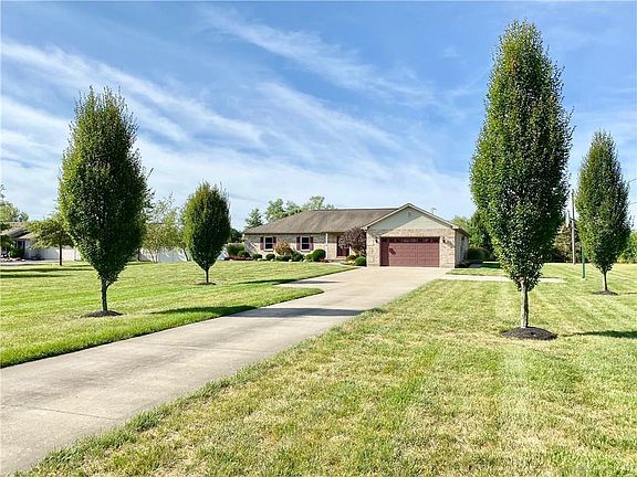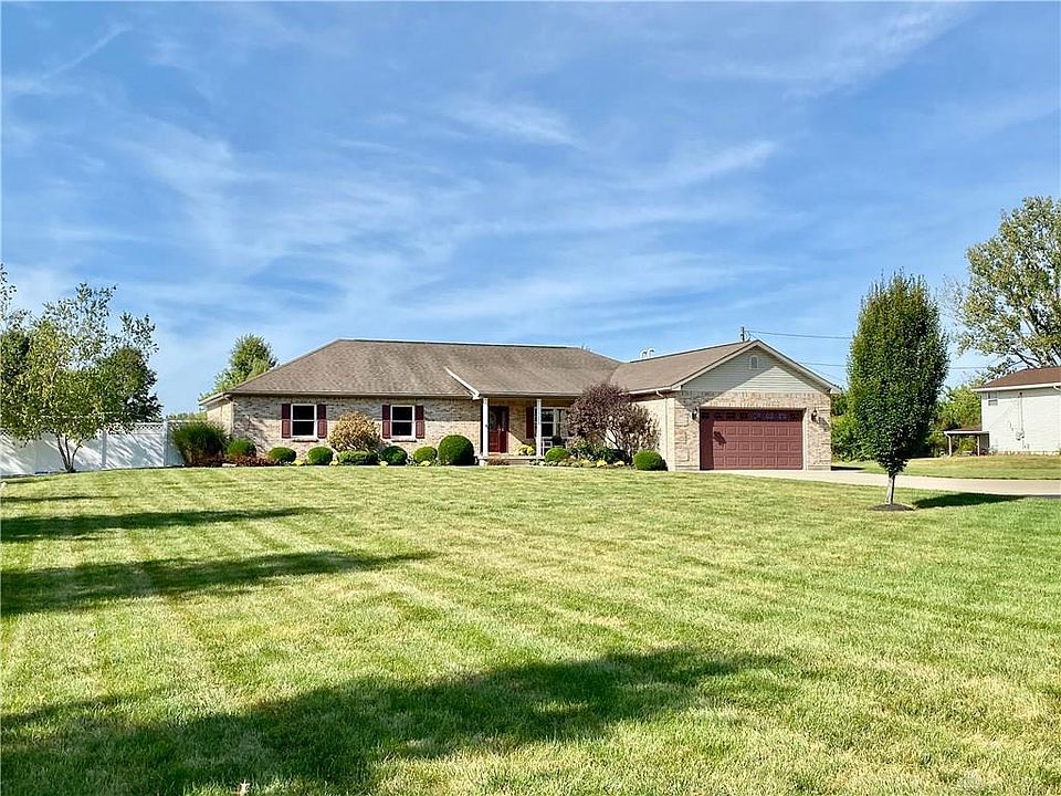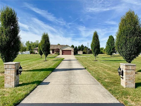 Fantastic, custom built, 4 bed, 2.5 bath, single floor, brick home on 1.2 acres in Greenon Schools! Meticulously cared-for! A gorgeous approach brings you to the door, & the porch invites you in. Once inside, you'll find an open concept. The kitchen is redesigned & remodeled & features tons of gorgeous cabinets w/granite counter space & a massive island. Spacious dining area adjoins. A cozy family room w/fireplace is the perfect spot to entertain friends & family. The master suite features a remodeled bath w/large shower, double vanities, soaker tub, & two walk-in closets. The spacious rec room leads to the massive deck w/covered area, retractable shades & 28' swimming pool. All bedrooms are spacious each with double closets. Tons of storage space in the fully insulated, oversized crawl space. Solid wood 6 panel doors, tankless water heater, water purification & reverse osmosis systems, constant-pressure well pump, gorgeous yard & nice views! So much to offer! Hurry!