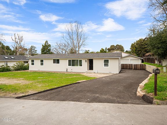 Newly Priced and Recently remodeled home in Santa Ynez on .23 acre lot on a cul-de-sac street close to the town area of Santa Ynez. New dual-paned windows set in a new stucco coat. Custom designed kitchen with soft close shaker style cabinets, new appliances including 3 door LG refrigerator, 36-inch range with matching vent system, new dishwasher and quartz counters with matching backsplash. Cozy breakfast bar with pendant lights. Primary bedroom with en-suite bath with double sinks, quartz-topped vanity, lots of storage. Two guest rooms on the opposite side of house. Separate laundry-utility room. New Central air-conditioning system, Tank-less water heater and its all waiting and ready for move-in, New asphalt driveway leading to detached garage with new garage doors. New Backyard redwood deck with railing. Gutters added to garage and main residence