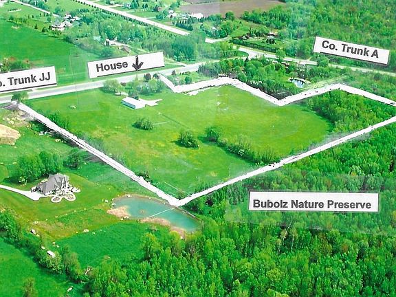 METICULOUSLY MAINTAINED 3BR ranch home set on approximately 8+ acres of land which borders Bubolz Nature Preserve. LARGE WINDOWS flood the living space with natural light. Big kitchen has solid surface counters and all appliances included. Woodburning fireplace will keep you toasty on those cold winter nights. COUNTRY LIVING close to Appleton! EASY COMMUTE. Spacious lower level is WAITING to be finished. MANY UPDATES. LARGE 42x70 SHED with additional acreage up to 18 acres available. Seller will split the 18 acres of land into 3 parcels. Call for details and to schedule a showing.