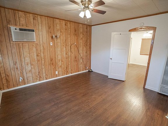 Charming front deckInviting open floor planCeiling fanAttractive laminate flooringWall heaterFunctional kitchen island