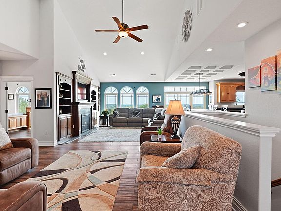 Perched on a hilltop with some of the most breathtaking views in Racine County, this 2017 custom brick ranch blends timeless design with craftsmanship. From its all-brick exterior, hurricane-rated shingles, and Pella triple-pane windows to hydronic heated floors and soaring cathedral ceilings, every feature reflects quality. The chef's kitchen highlights custom oak cabinetry, solid-surface counters, and premium KitchenAid appliances, while the master suite offers a spa bath with dual shower and slipper tub. A main-floor office can serve as a 3rd bedroom. Outdoors, enjoy a cantilevered composite deck perfect for sunsets, a heated 3-car garage, and a fully finished 40x40 outbuilding with separate utilities and its own hydronic heated floors--an ideal year-round space for hobbies or workshop