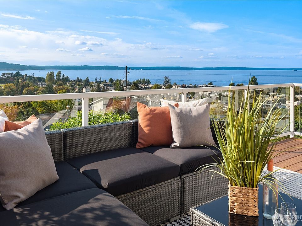 Welcome to some of the biggest views in West Seattle! Perched above Alki on a private oversized lot, this impeccably maintained mid-century lives large, offering jaw-dropping, panoramic vistas of the Sound & Olympics. Enter into an open concept layout with a chef's kitchen, living & dining areas that flow effortlessly onto an entertainment deck. Two generous bedrooms including a primary w/en-suite round out the main level while the daylight basement has another bedroom, spa worthy baths & huge rec room. Enjoy refinished hardwoods, new paint, modern systems, 2 fireplaces & tons of storage. Stunning fenced yard w/patio perfect for gardening & play. Rare two-driveway property with attached garage + carport. Near the beach, restaurants & more!